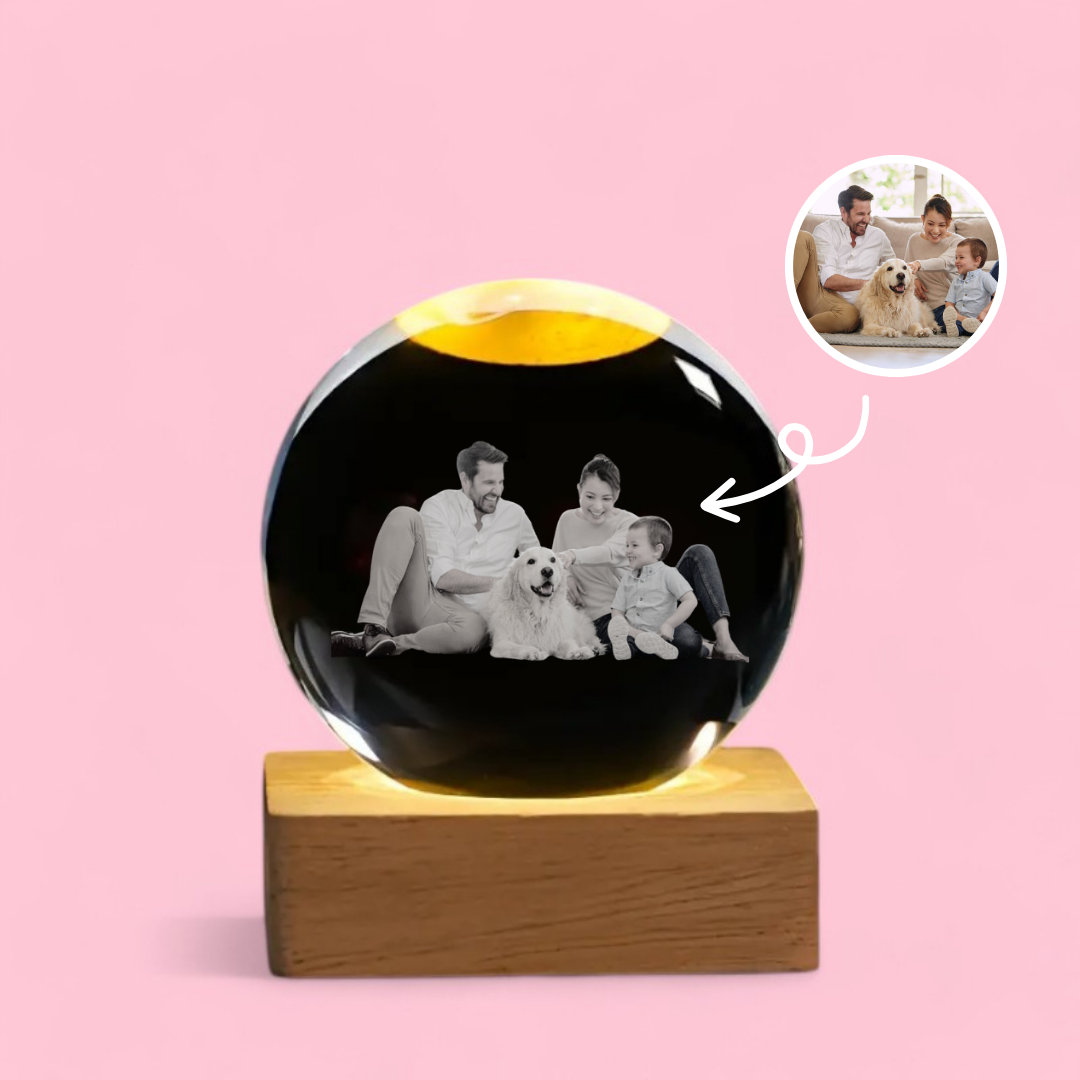 This beautifully crafted crystal orb transforms your favorite photo into a timeless keepsake, radiating warmth and love with every glow.